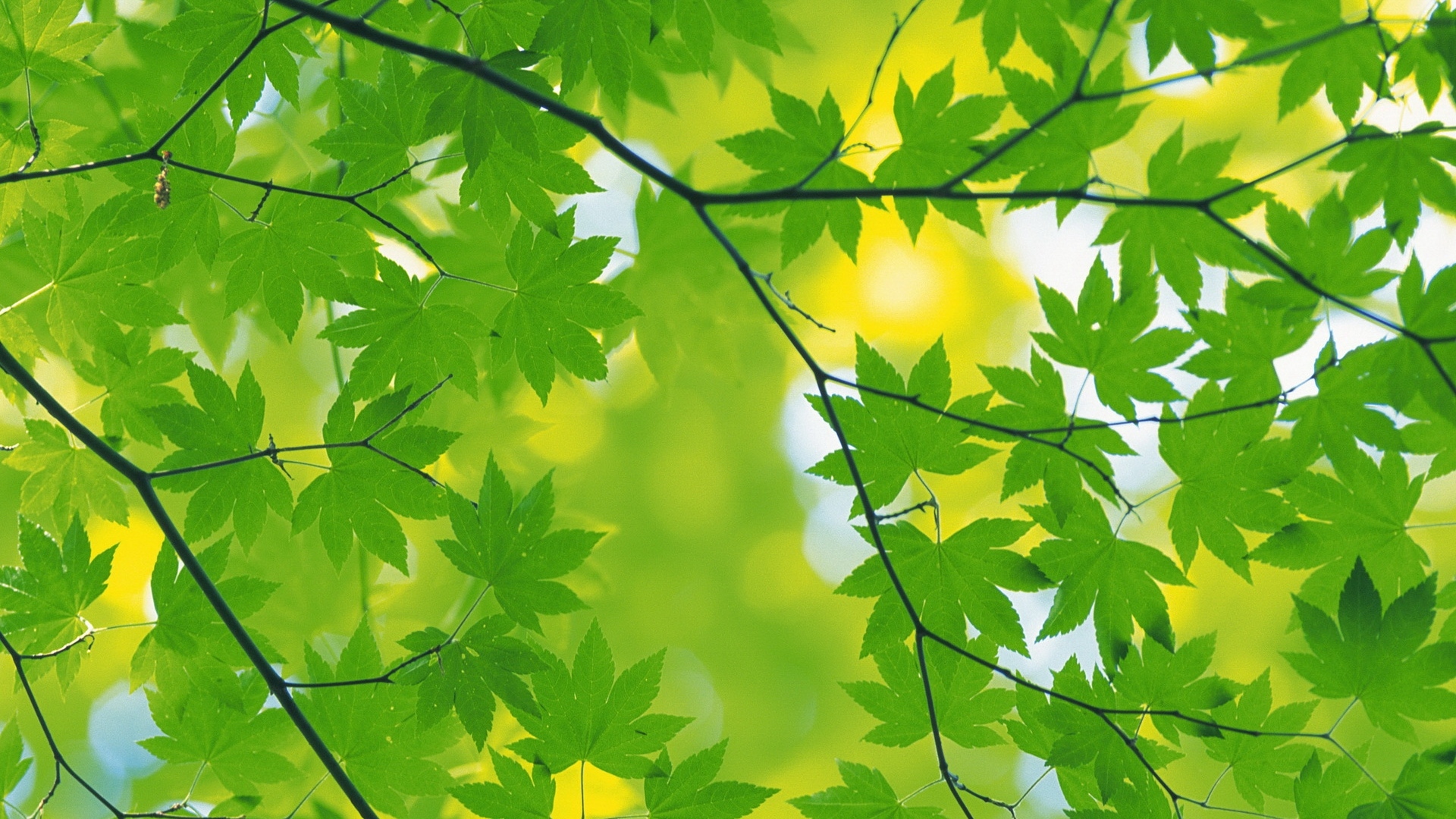 Description: A green leafy tree with a bright yellow background in the background is a blurry image of the leaves.
