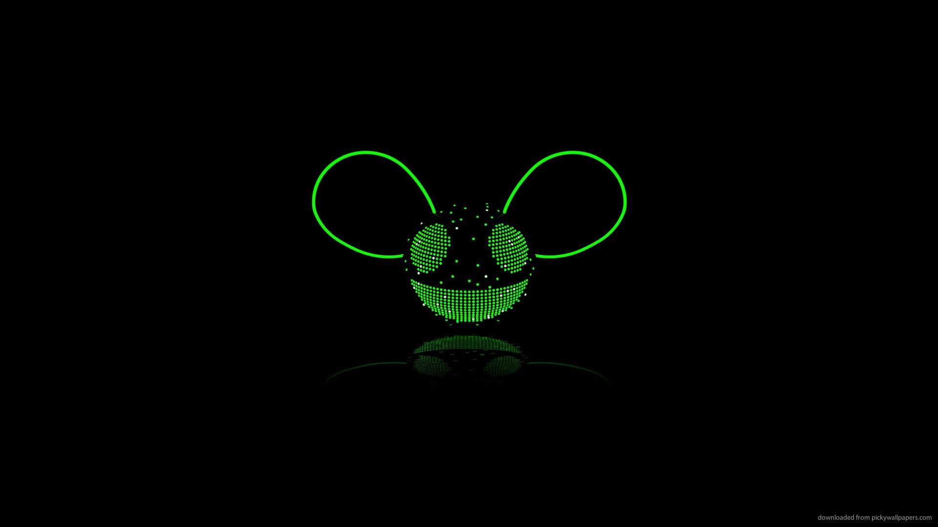 Description: A green mouse with a black background and a green light on it's face and ears.