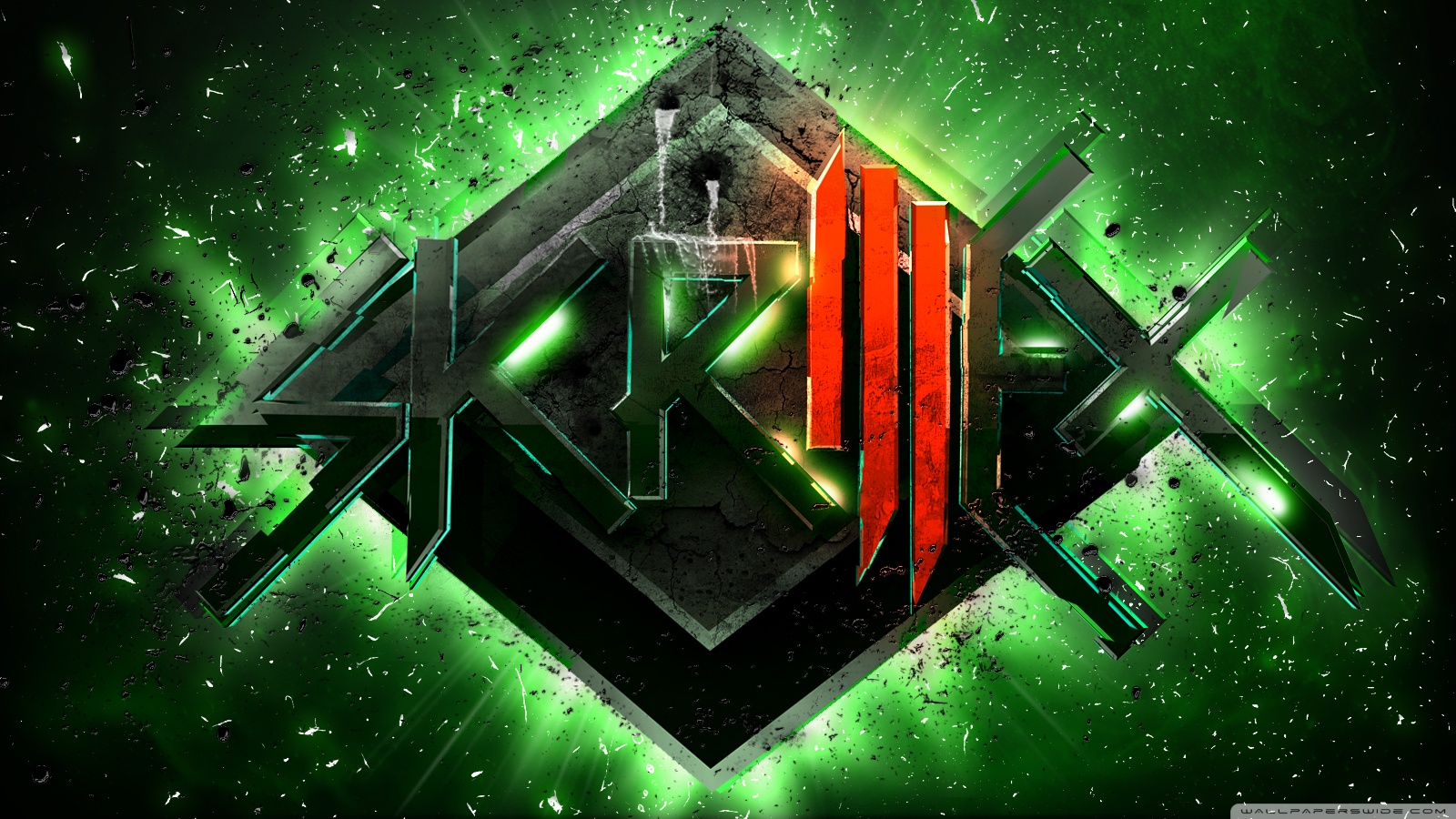 Description: A green and red abstract background with a black and red design on it's side and a green and red design on the top.