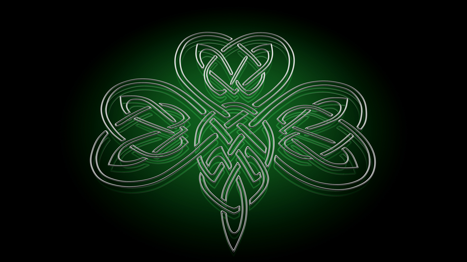 Description: A green shamrock with a black background and a white outline on the bottom of it.