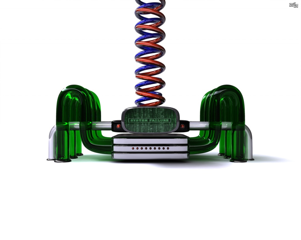 Description: A green object with a spiral design on top of it's head and a radio on top of it.