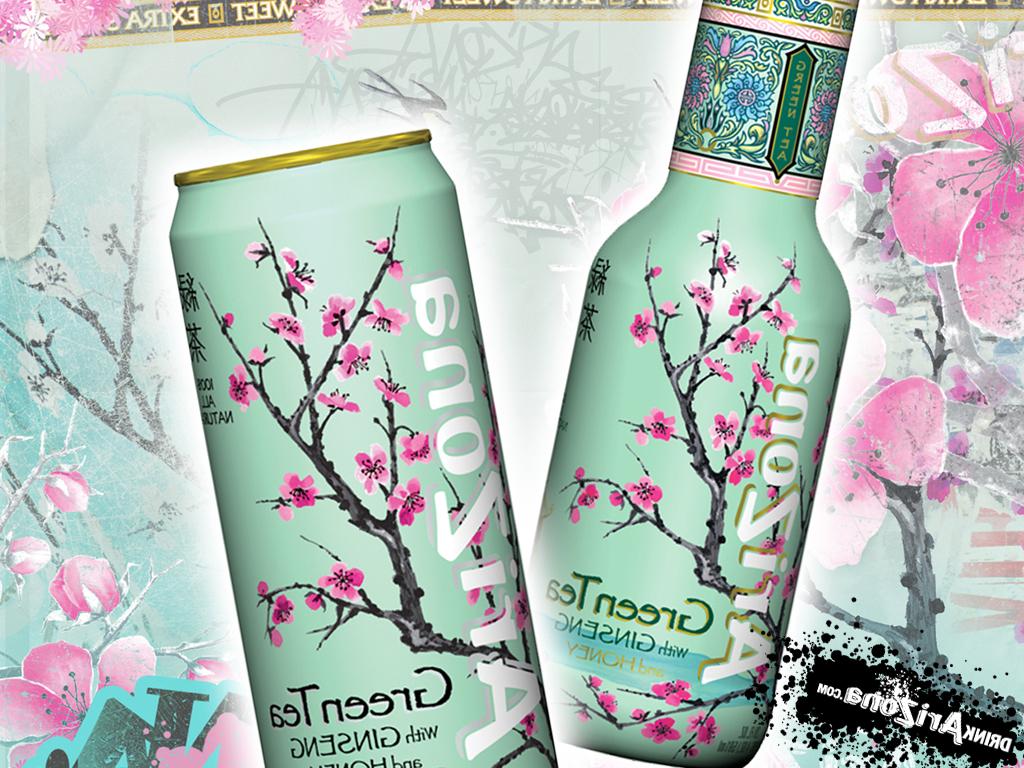Description: A can of green tea with pink flowers on it and a can of tea with a green tea on it.