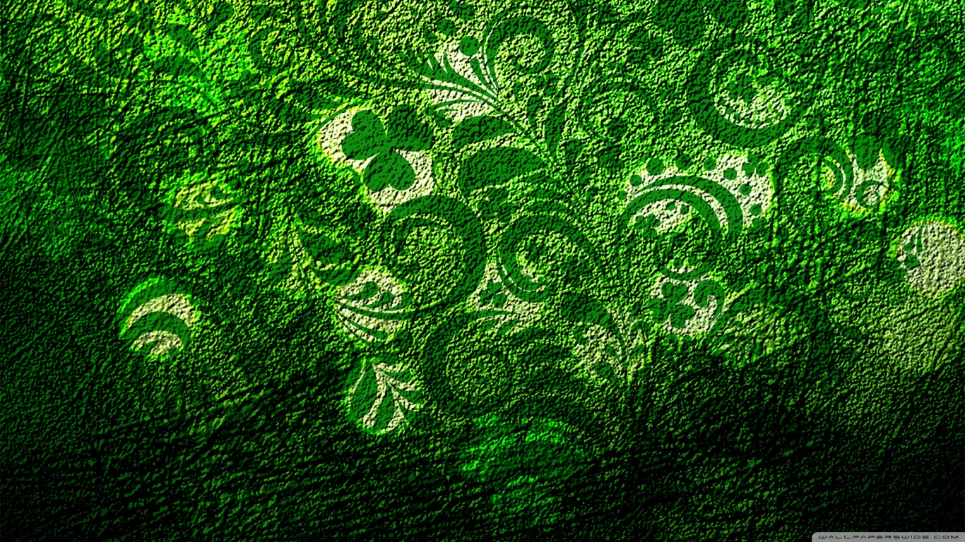 Description: A green wall with a pattern of leaves and flowers on it's side and a green background with a white flower.