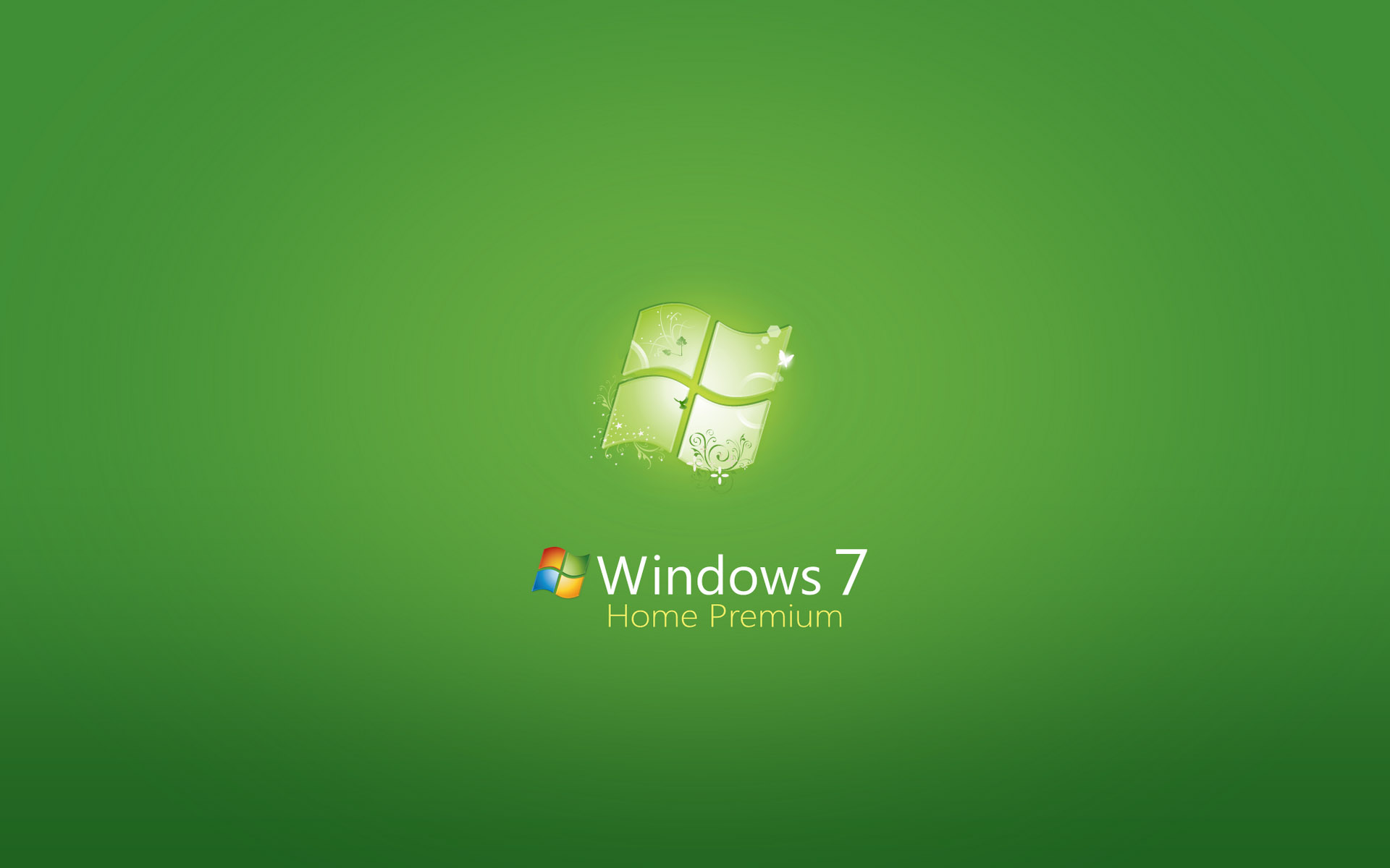 Description: A green wallpaper with a windows 7 logo on it's side and a green background with a white bird.