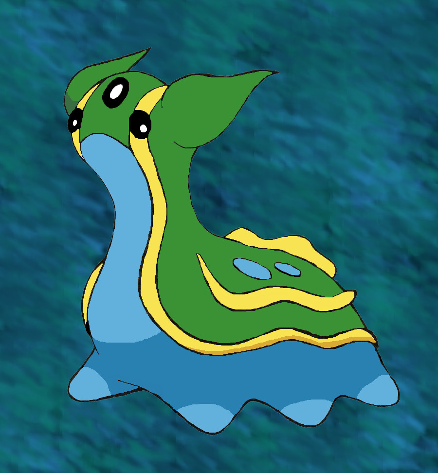 Description: A cartoon of a green and yellow sea turtle floating on water with a blue background and a yellow stripe.
