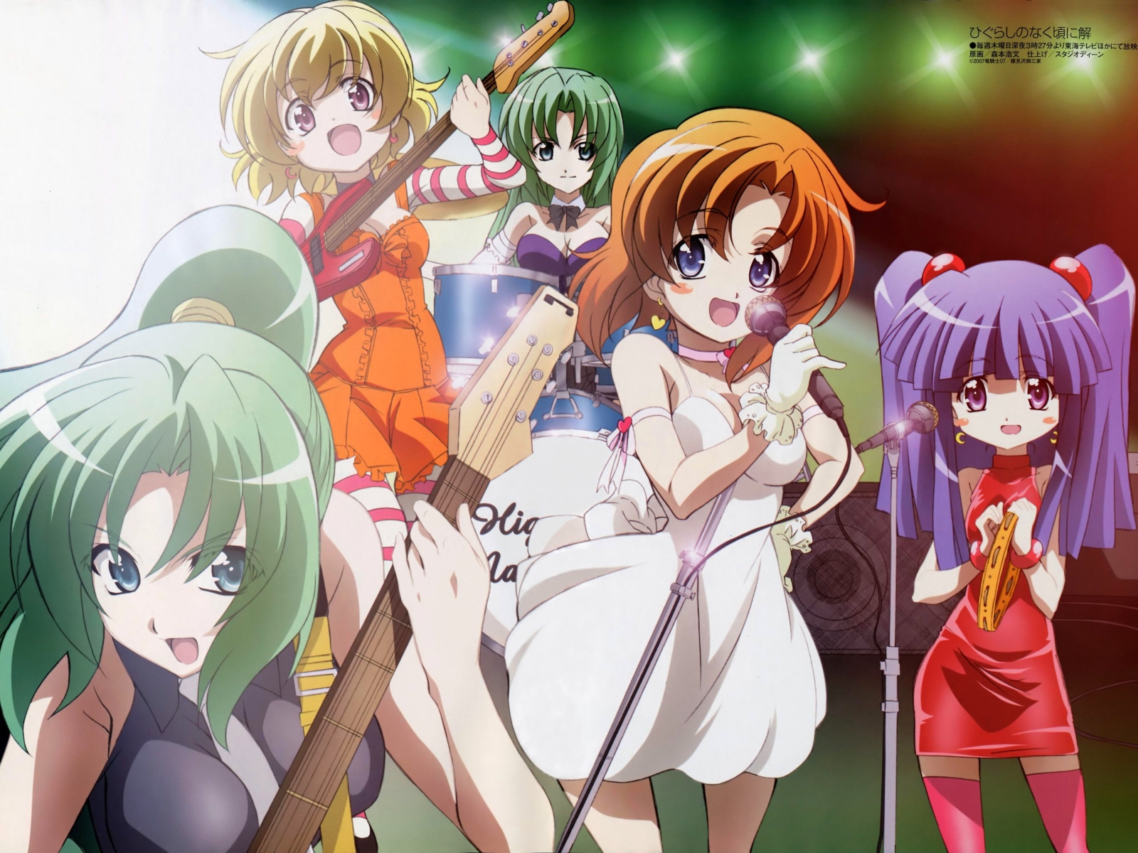Description: A group of girls with different colored hair and makeup are standing in front of a stage with microphones.