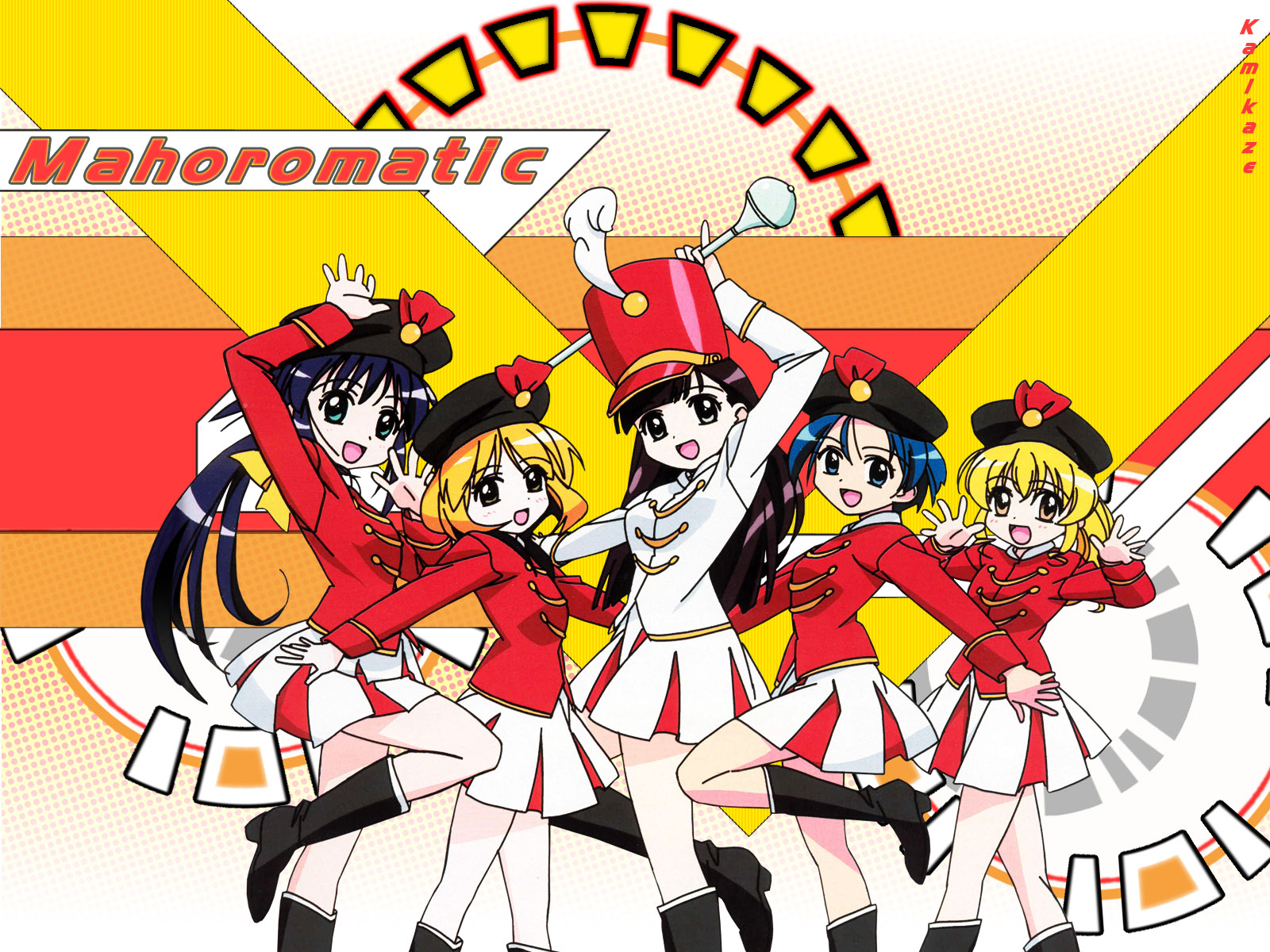 Description: A group of girls in uniform standing next to each other with their arms in the air and their arms in the air.