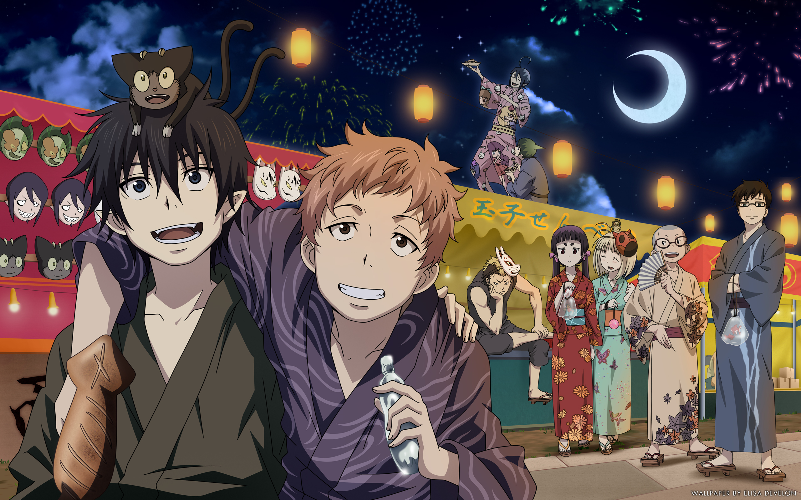 Description: A group of people standing around each other in front of a building with fireworks in the sky above them.