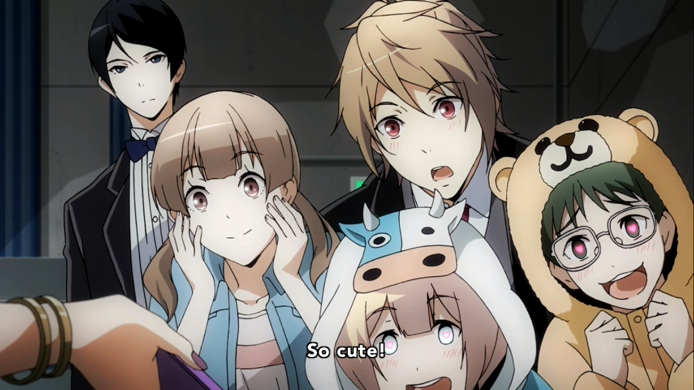 Description: A group of people standing next to each other in front of a building with a sign that says so cute.
