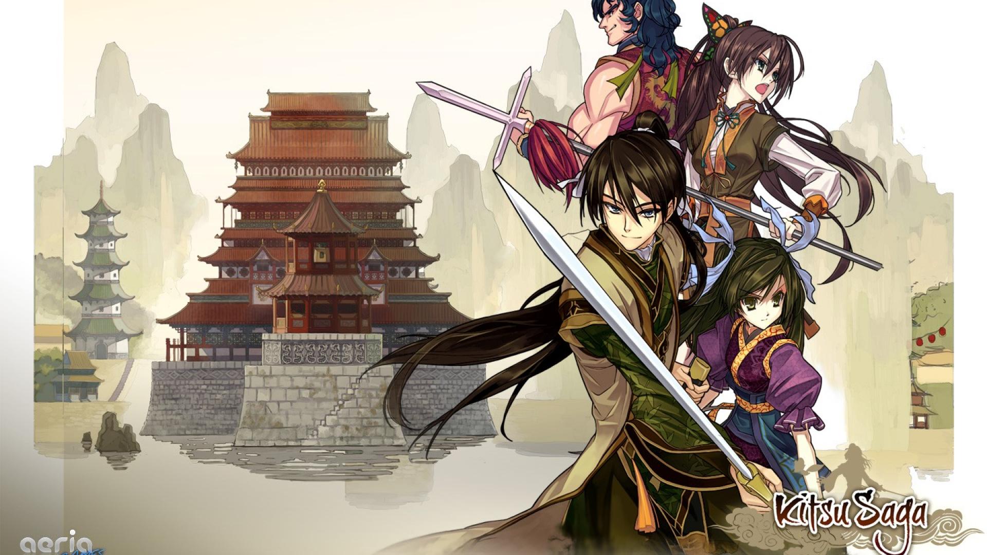 Description: A group of people standing next to each other in front of a castle with a sword in hand and a woman holding a sword.