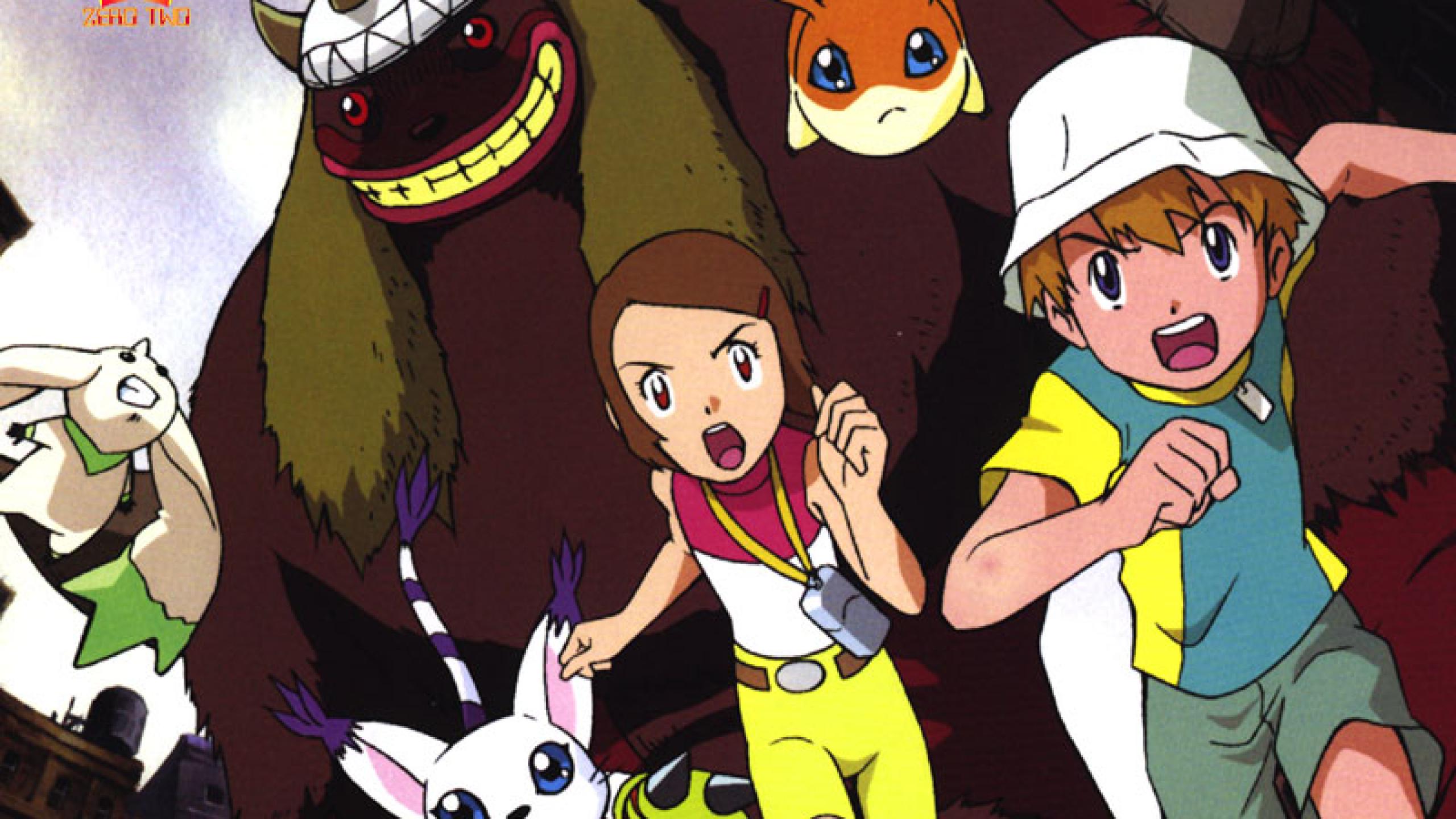 Description: A group of people standing next to each other near a giant animal and a person with a hat on.