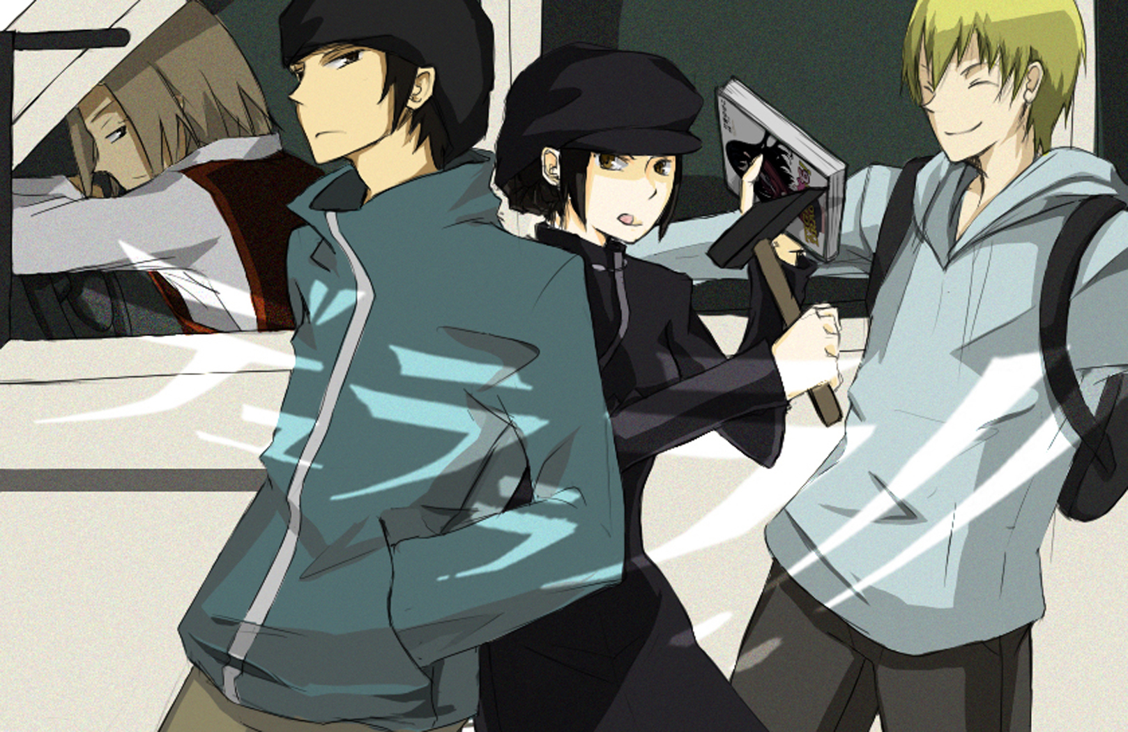Description: A group of people standing next to each other holding guns and a gun in their hands and looking at the camera.
