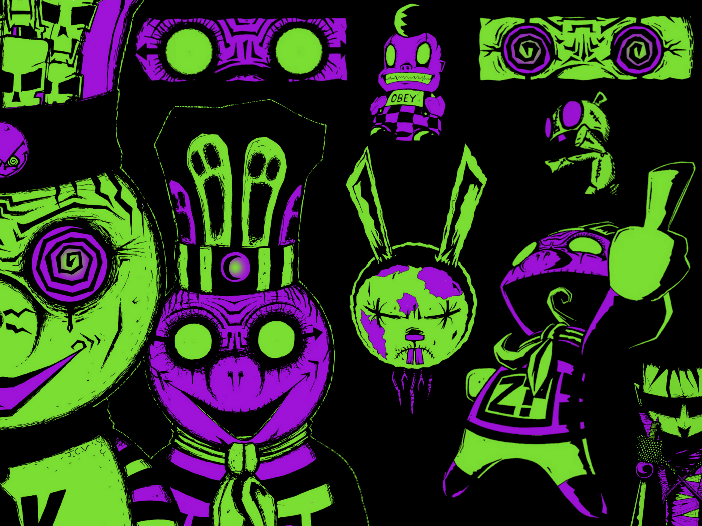 Description: A drawing of a group of people with masks on them and a person with a mask on his face.