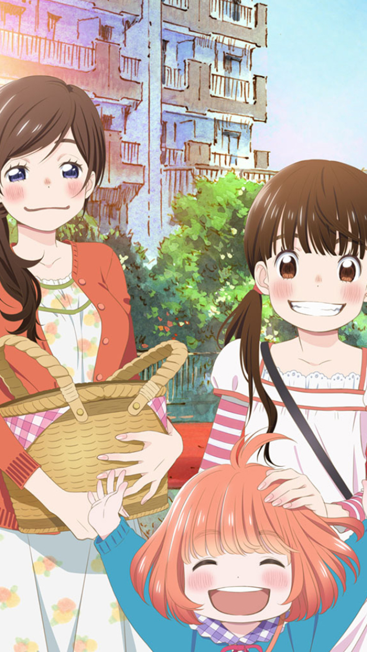 Description: A group of people standing next to each other in a park with buildings in the background and a woman holding a basket.