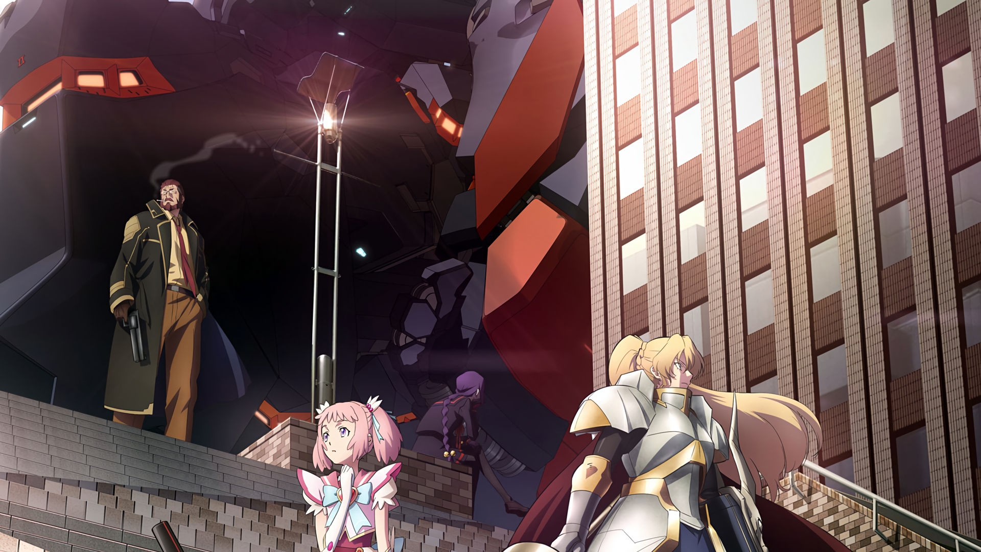 Description: A group of people standing on a roof in a city with tall buildings and a person standing on a ledge.