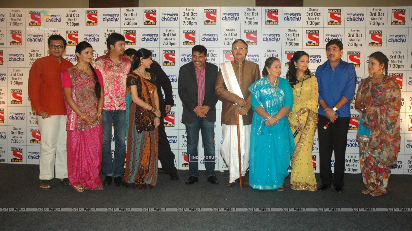 Description: A group of people standing next to each other on a stage with a backdrop behind them and a wall behind them.