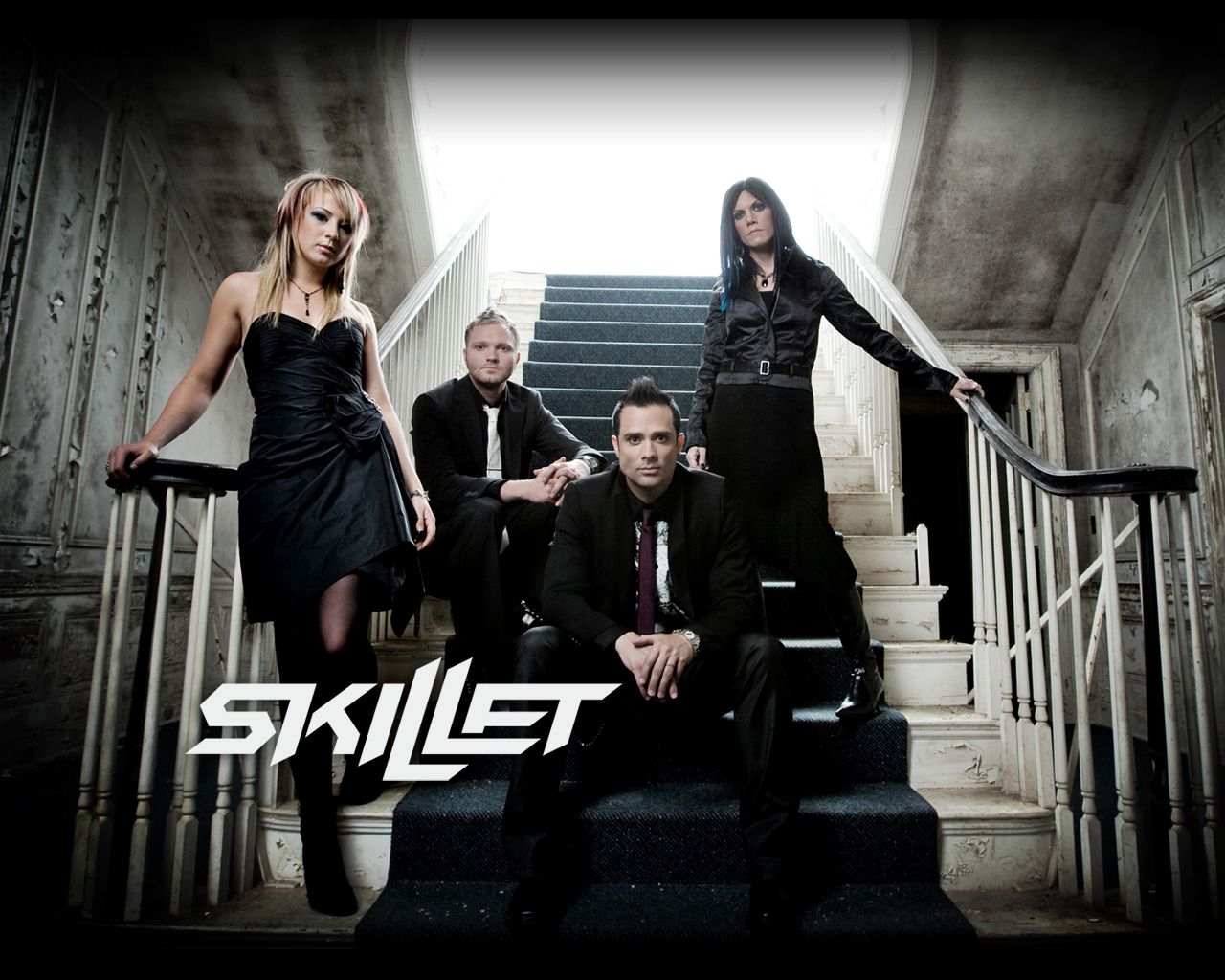 Description: A group of people sitting on a stair case in a building with the words skill written on it in white.