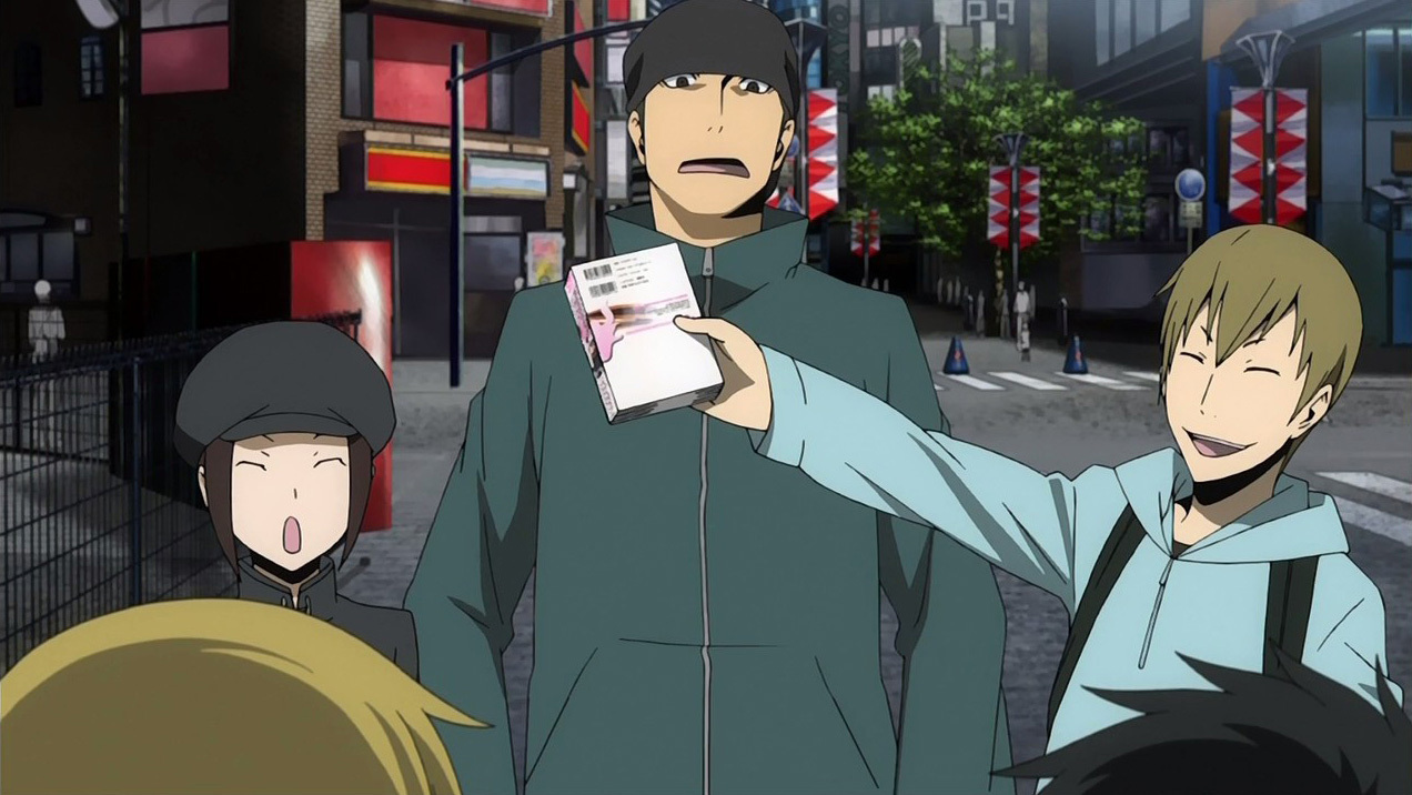 Description: A group of people standing on a street next to each other holding a piece of paper in their hands.