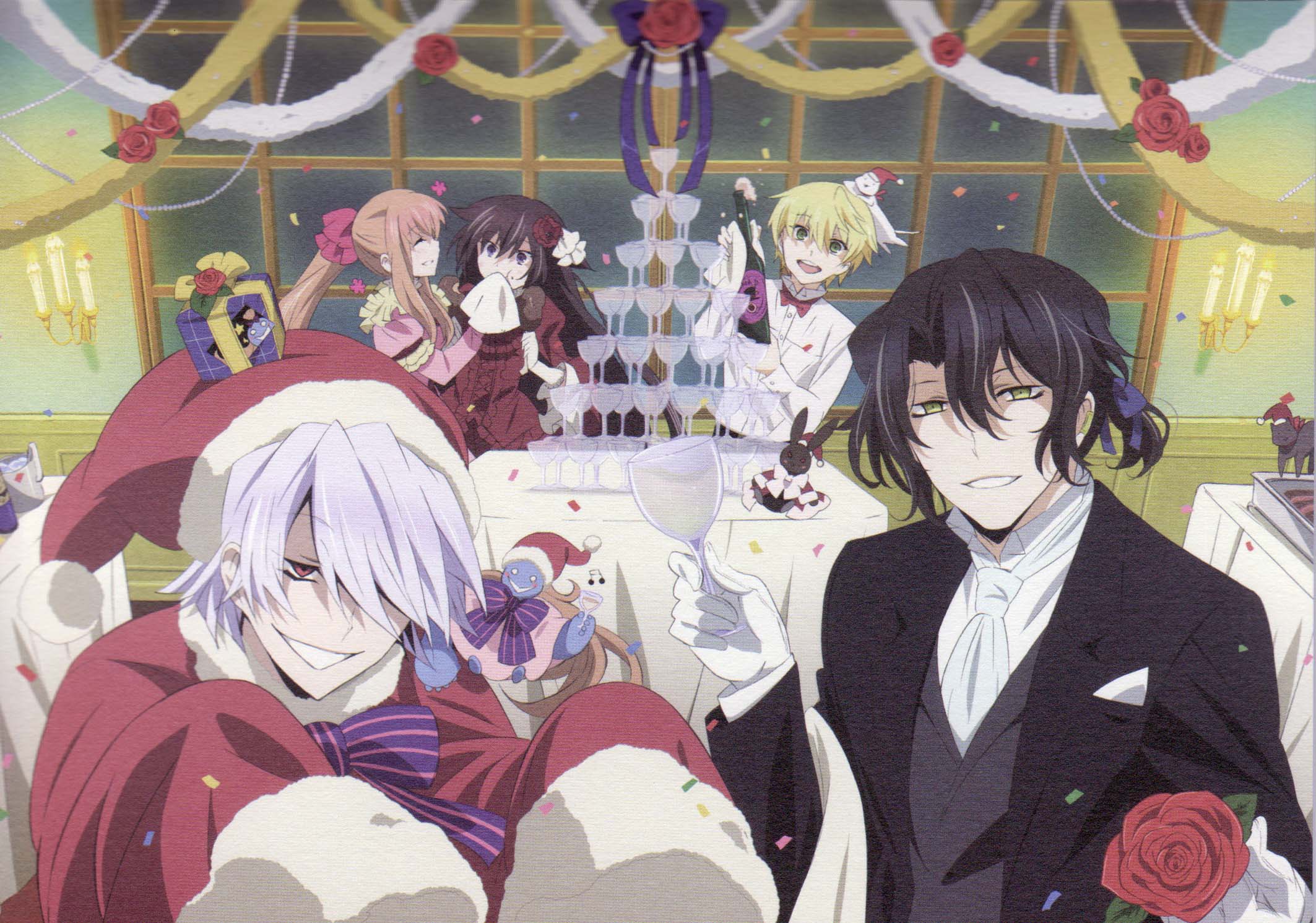 Description: A group of people sitting at a table with a cake on it and a cake in the middle of the table.