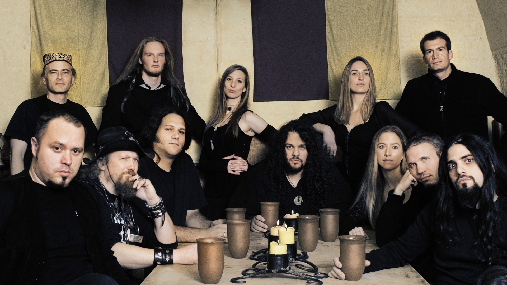 Description: A group of people sitting around a table with cups on it and candles in front of them.