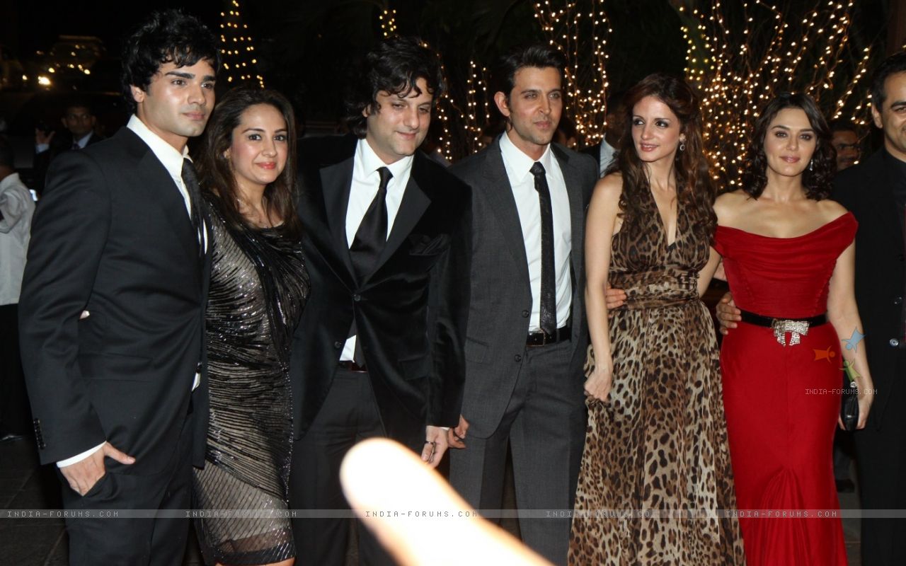 Description: A group of people standing next to each other in front of a tree with lights on it and a person taking a picture.
