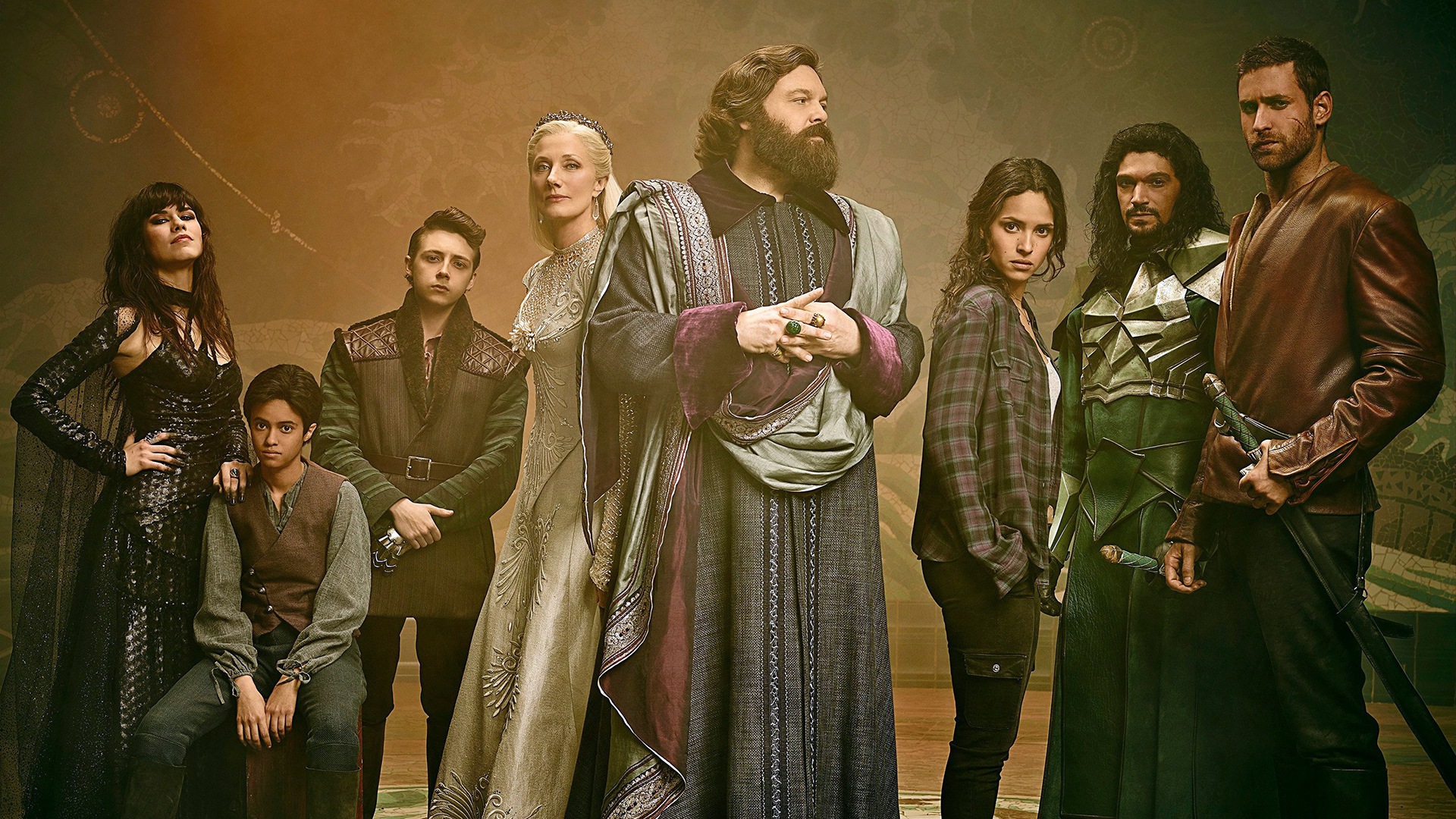 Description: A group of people standing next to each other in front of a wall with a man in a long robe.