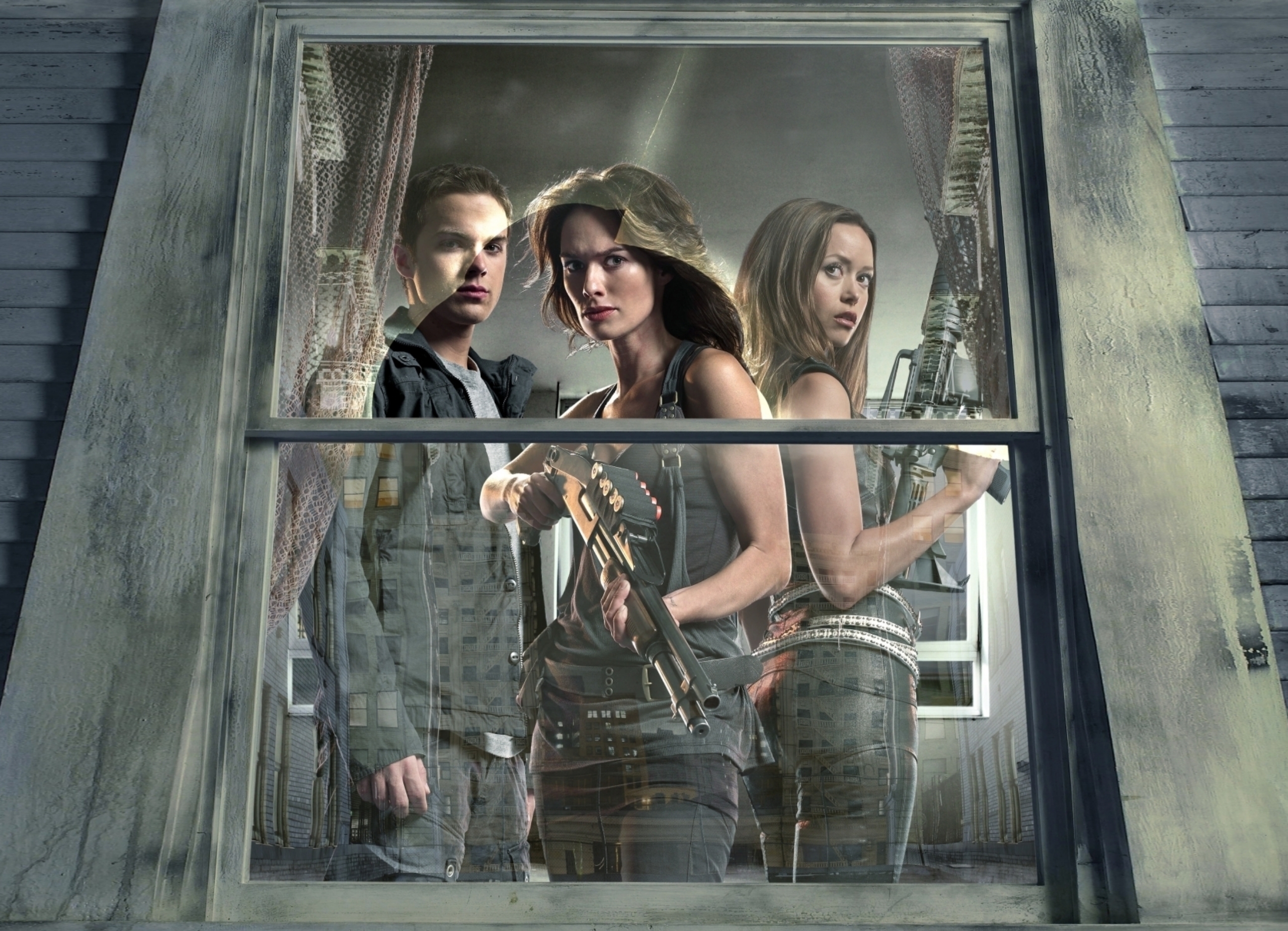 Description: A group of people standing in front of a window with a gun in hand and a gun in the other hand.