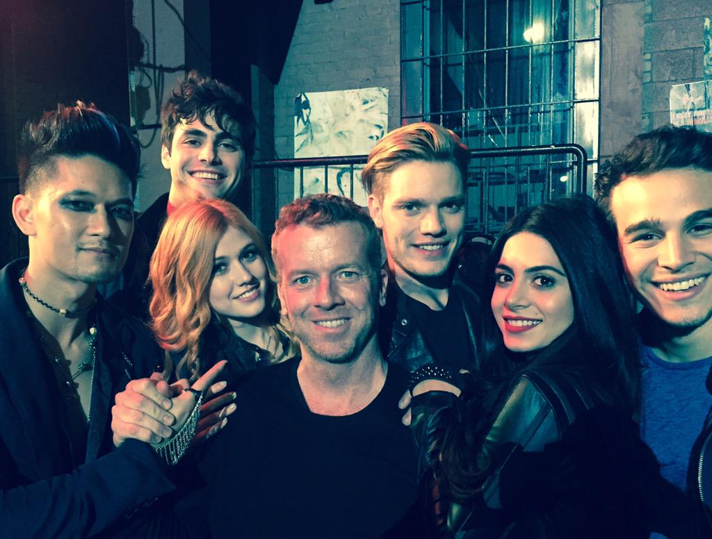 Description: A group of people posing for a picture together in a bar or restaurant with a man in the middle.