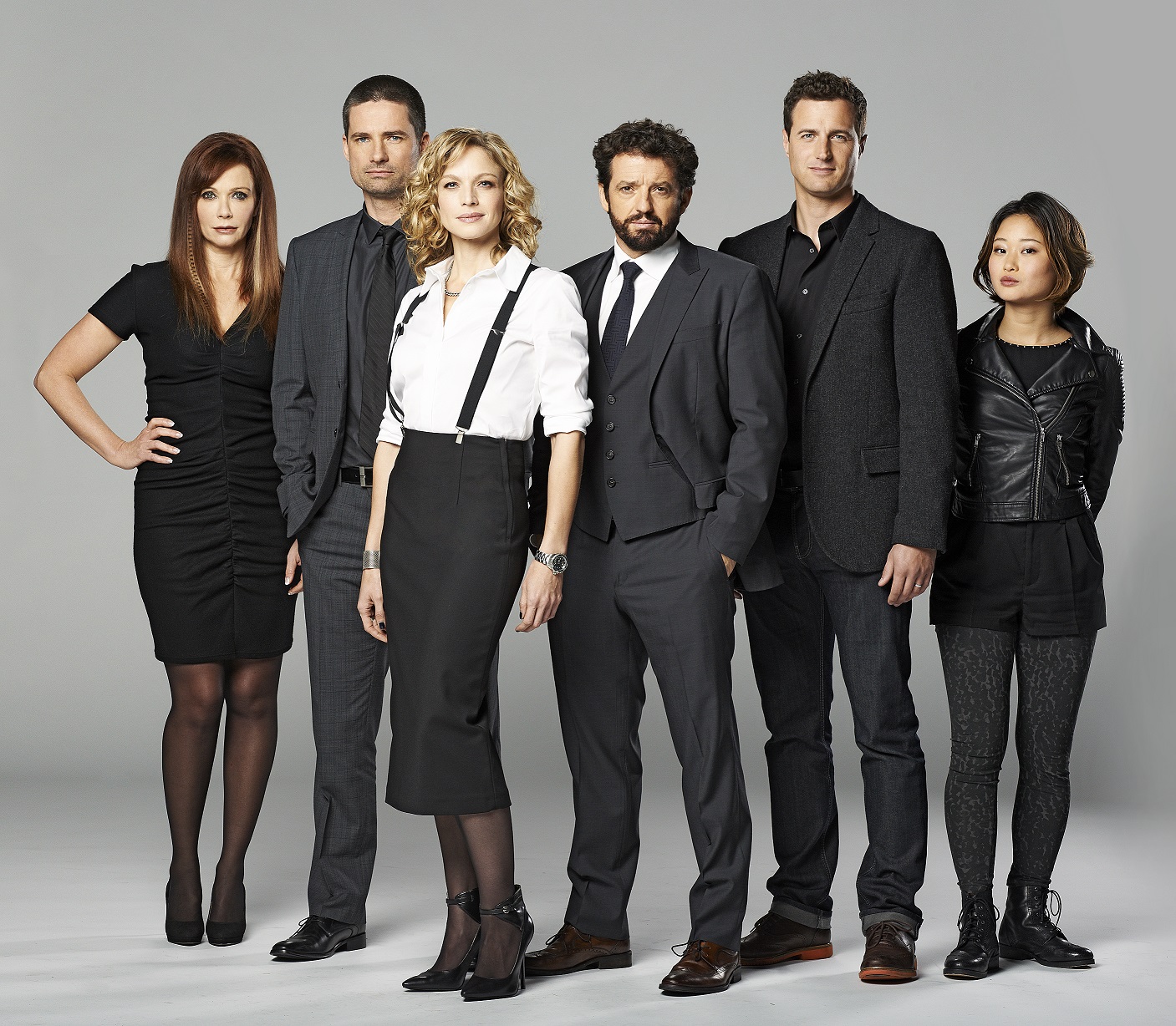 Description: A group of people standing next to each other in a photo studio with a man in a suit and tie.
