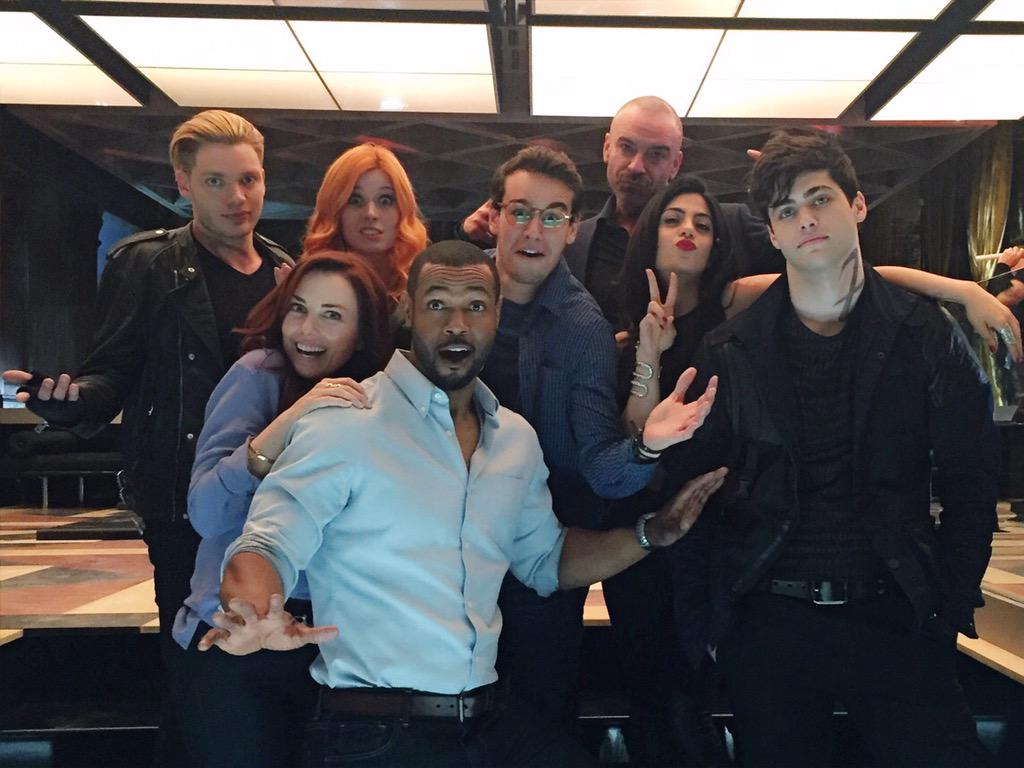 Description: A group of people posing for a picture together in a room with a ceiling light and a ceiling fan.