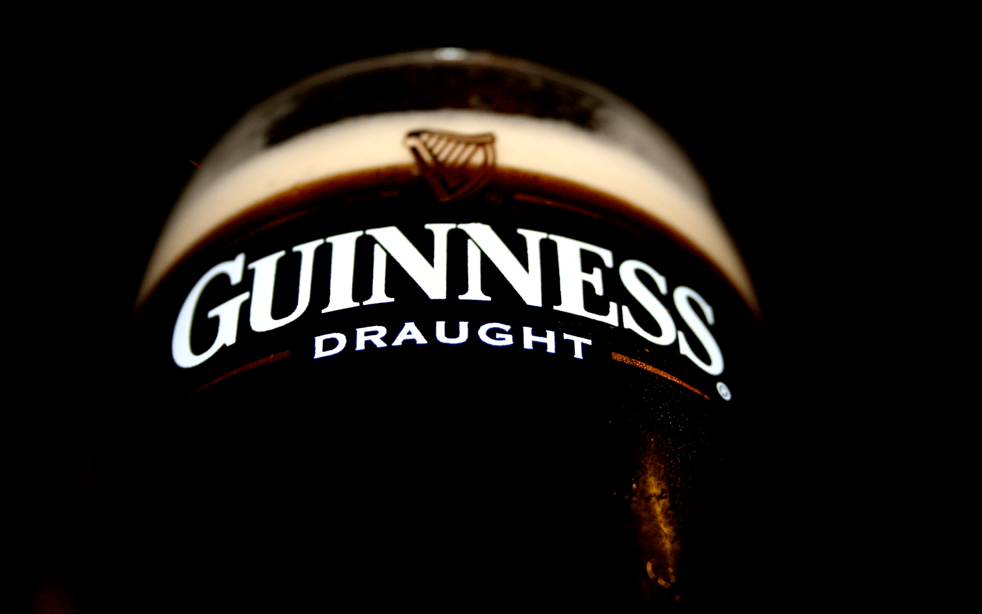 Description: A bottle of guinness draught sitting on a table top with a black background and a white lettering on the top.