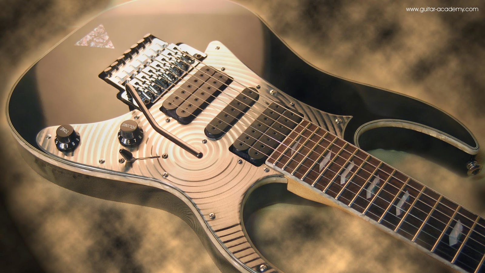 Description: A guitar with a unique neck and neckplates is shown in this image.