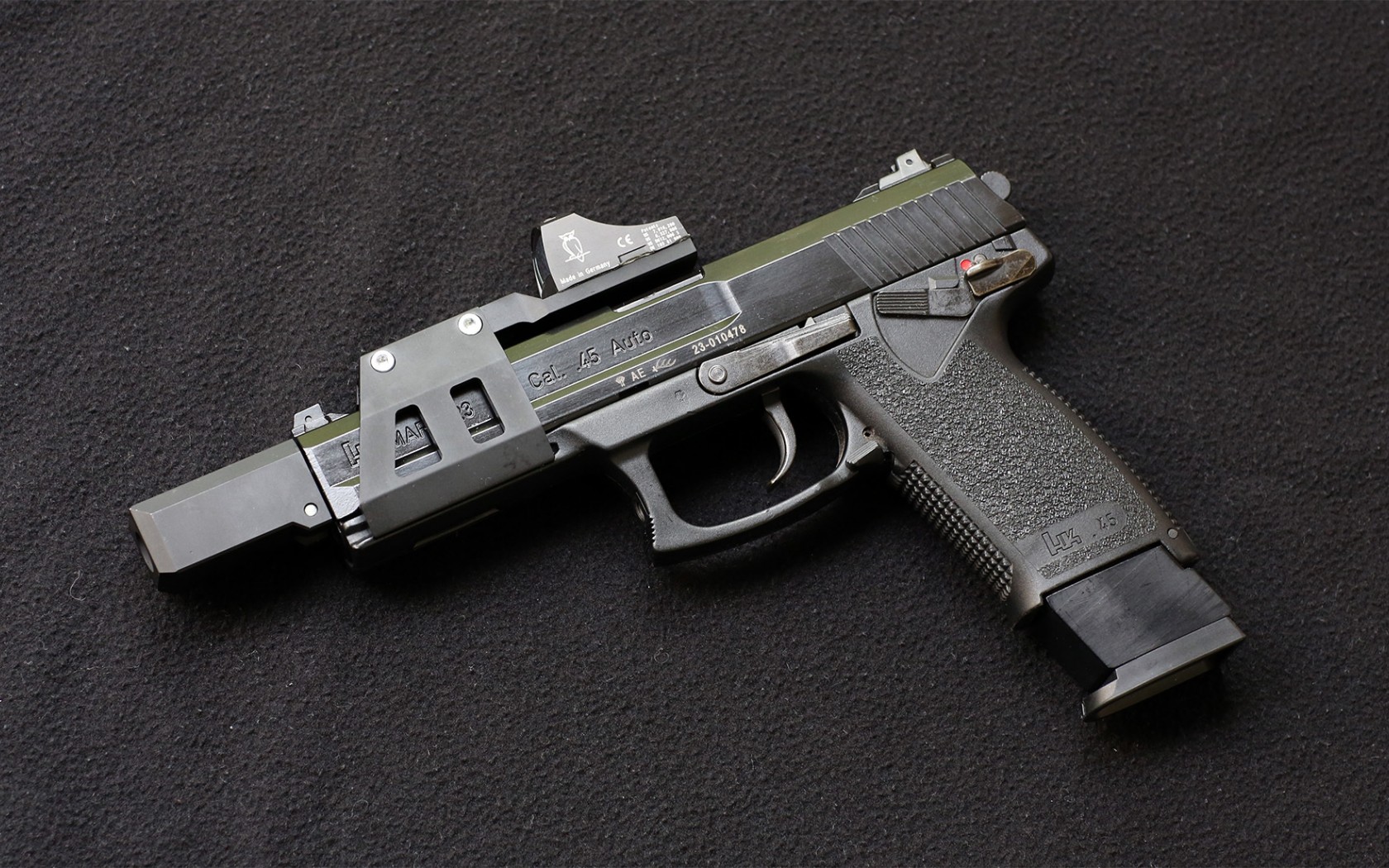 Description: A gun laying on a black surface with a black background and a black background with a black background and a black background with a black background with a black background.