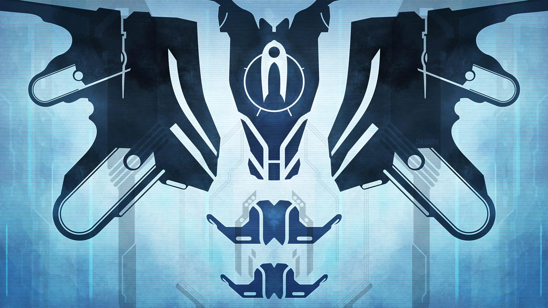 Description: A stylized image of a pair of guns with a blue background and a blue background with a blue background.