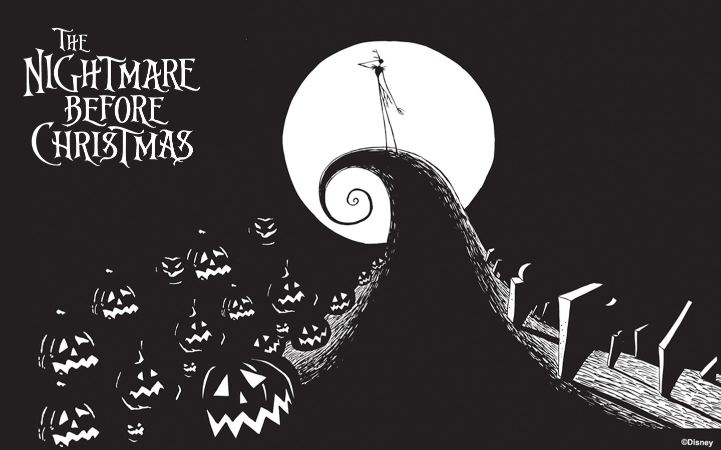Description: A black and white image of a halloween scene with pumpkins and a full moon in the background with the words.