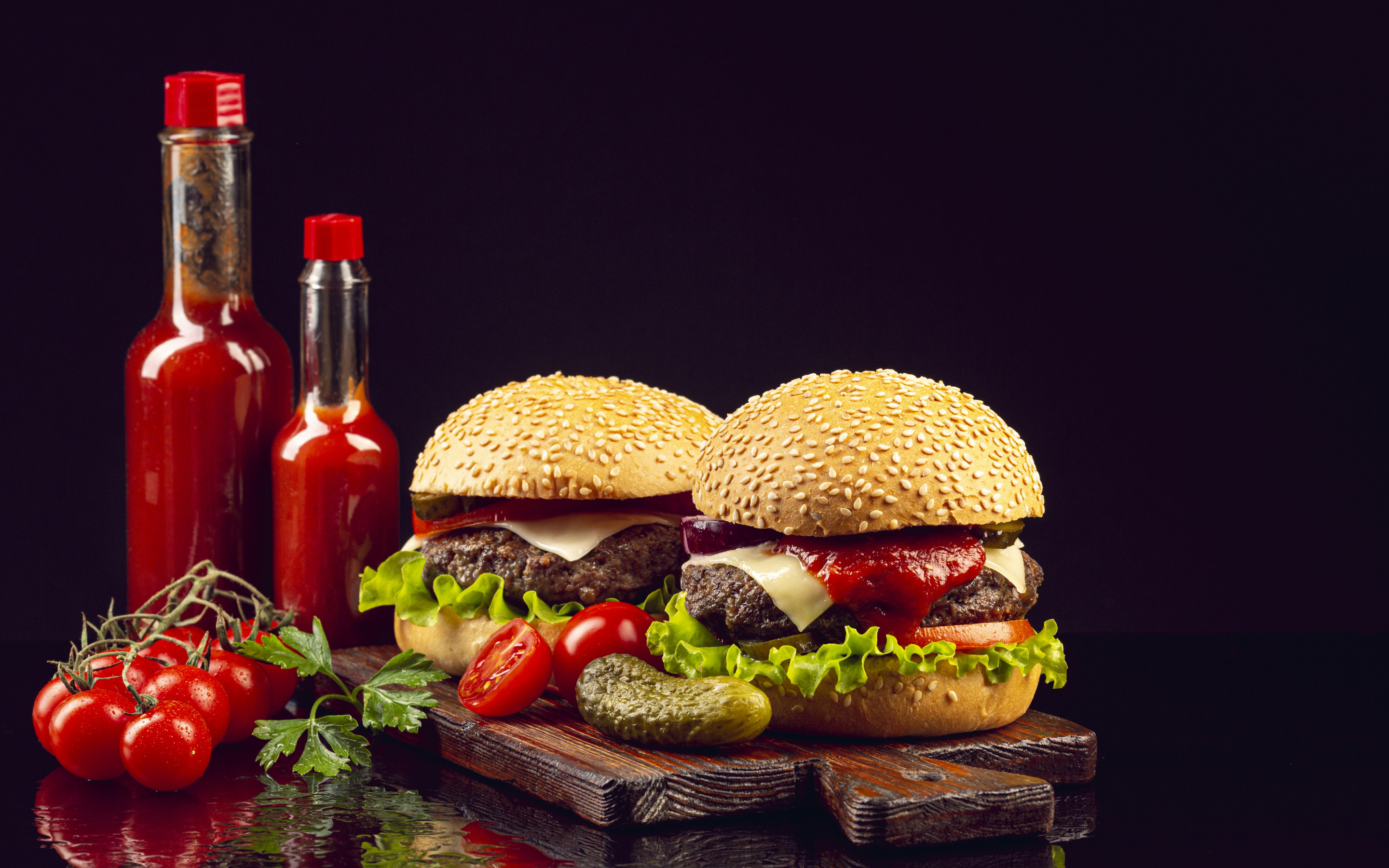 Description: A hamburger with tomatoes.