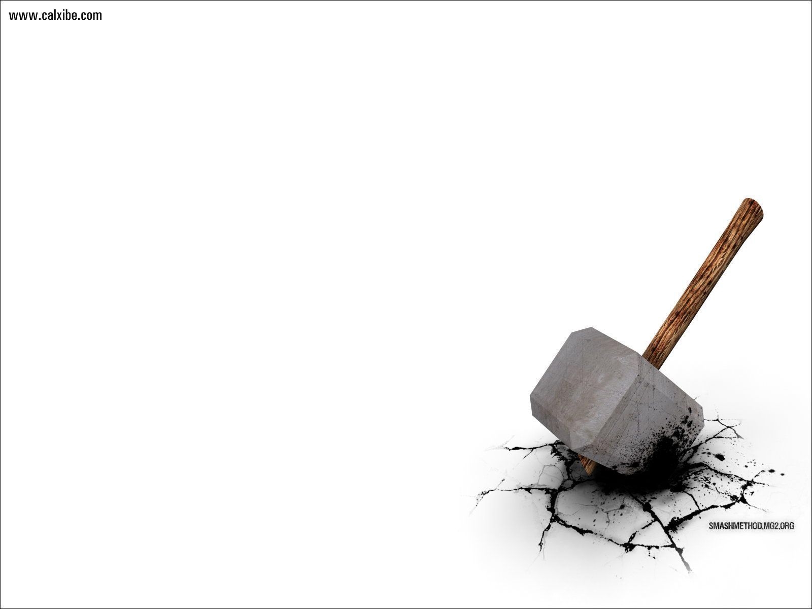 Description: A hammer stuck in a crack in the ground with a white background and a black hole in the ground.