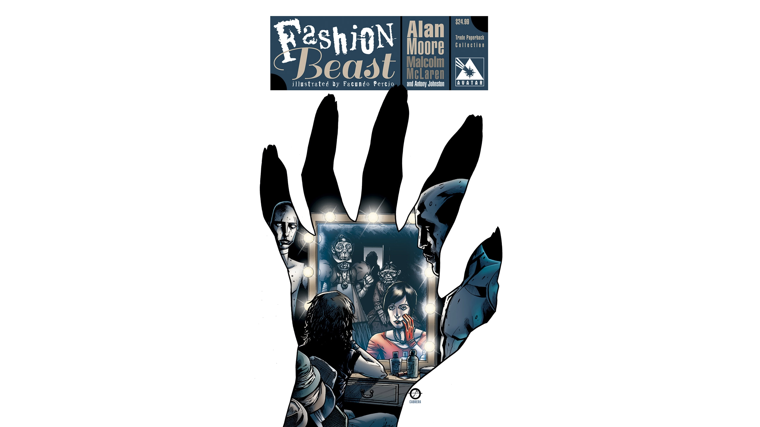 Description: A hand with a picture of a band on it and a sign above it that says fashion beast magazine.