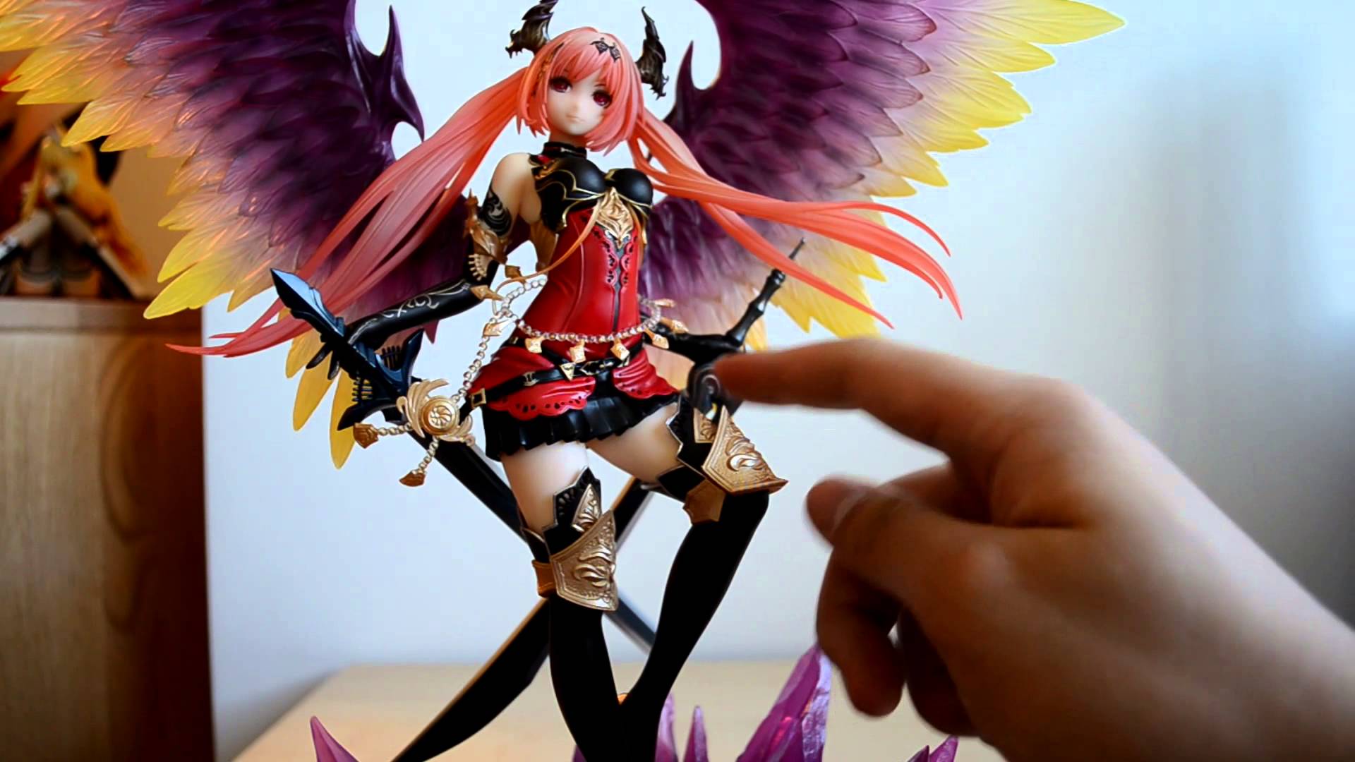 Description: A hand holding a toy with a doll like figure on it's arm and a doll like figure on the other hand.