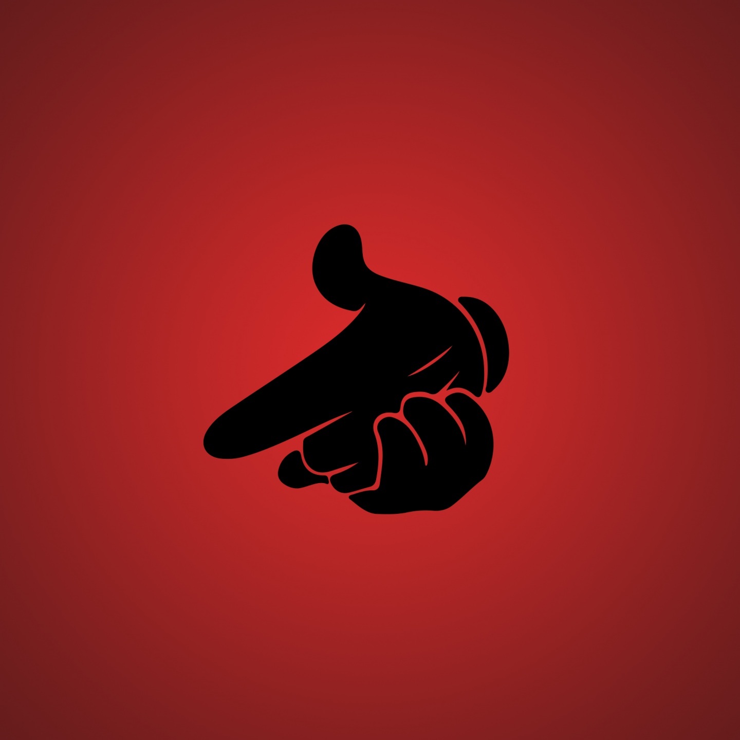 Description: A hand pointing at something with a red background behind it and a black silhouette of a hand pointing at something.