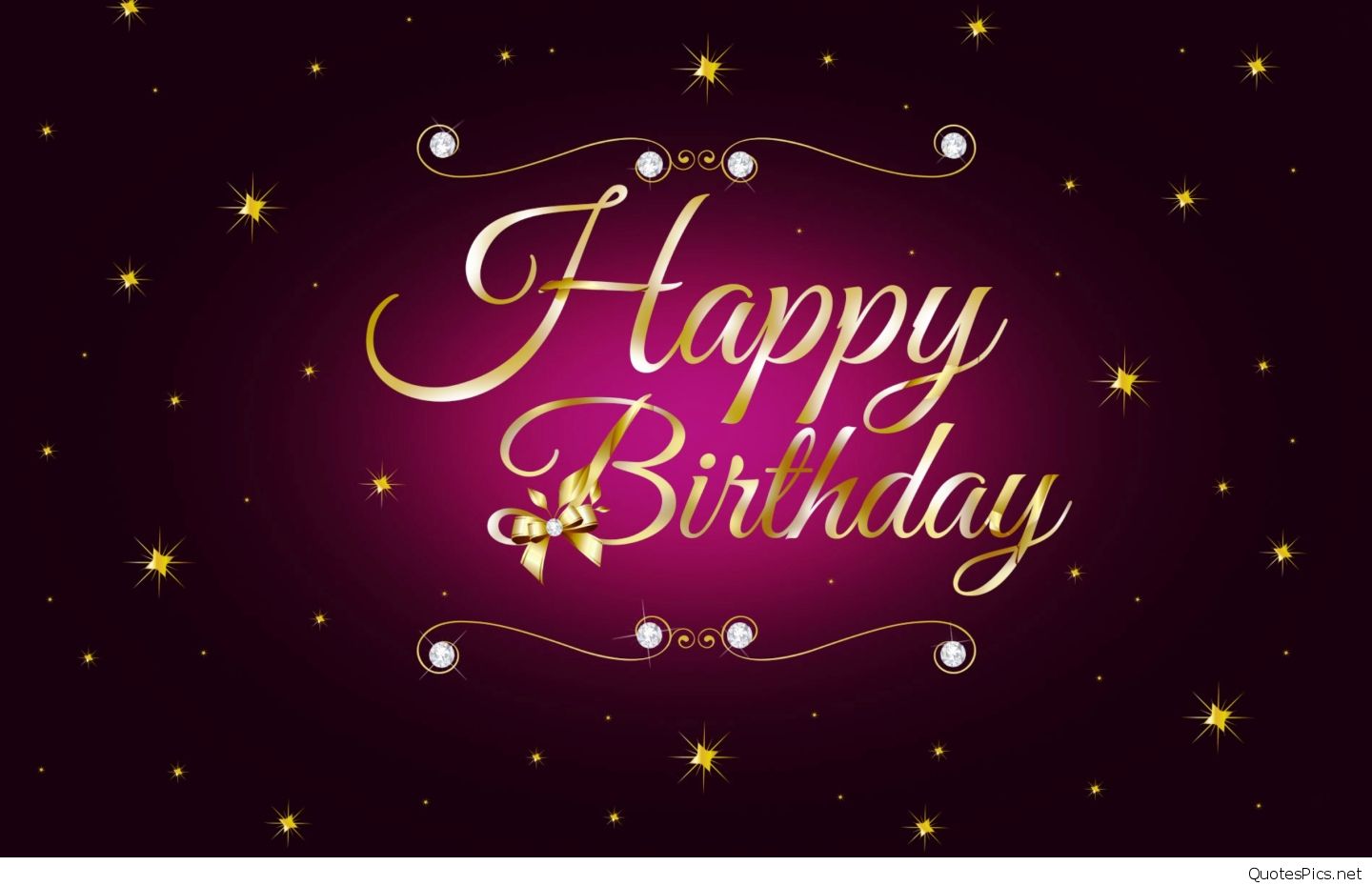 Description: A happy birthday card with a purple background and gold lettering on it.