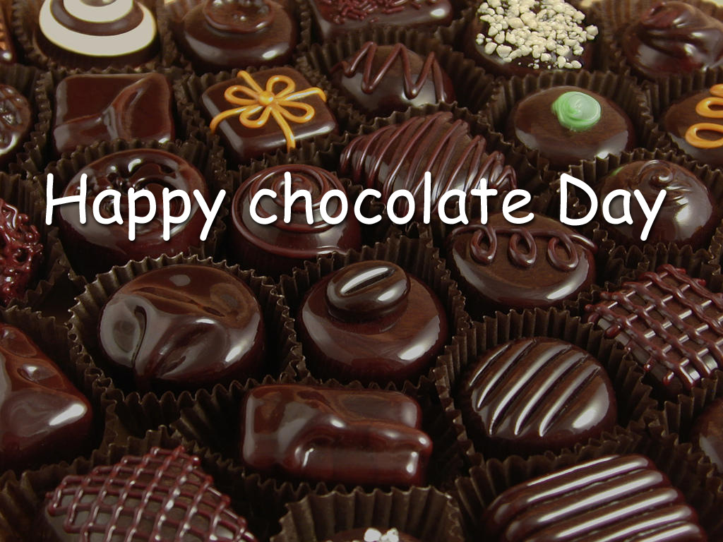 Description: A close up of a box of chocolates with a happy chocolate day message in the middle of the box.