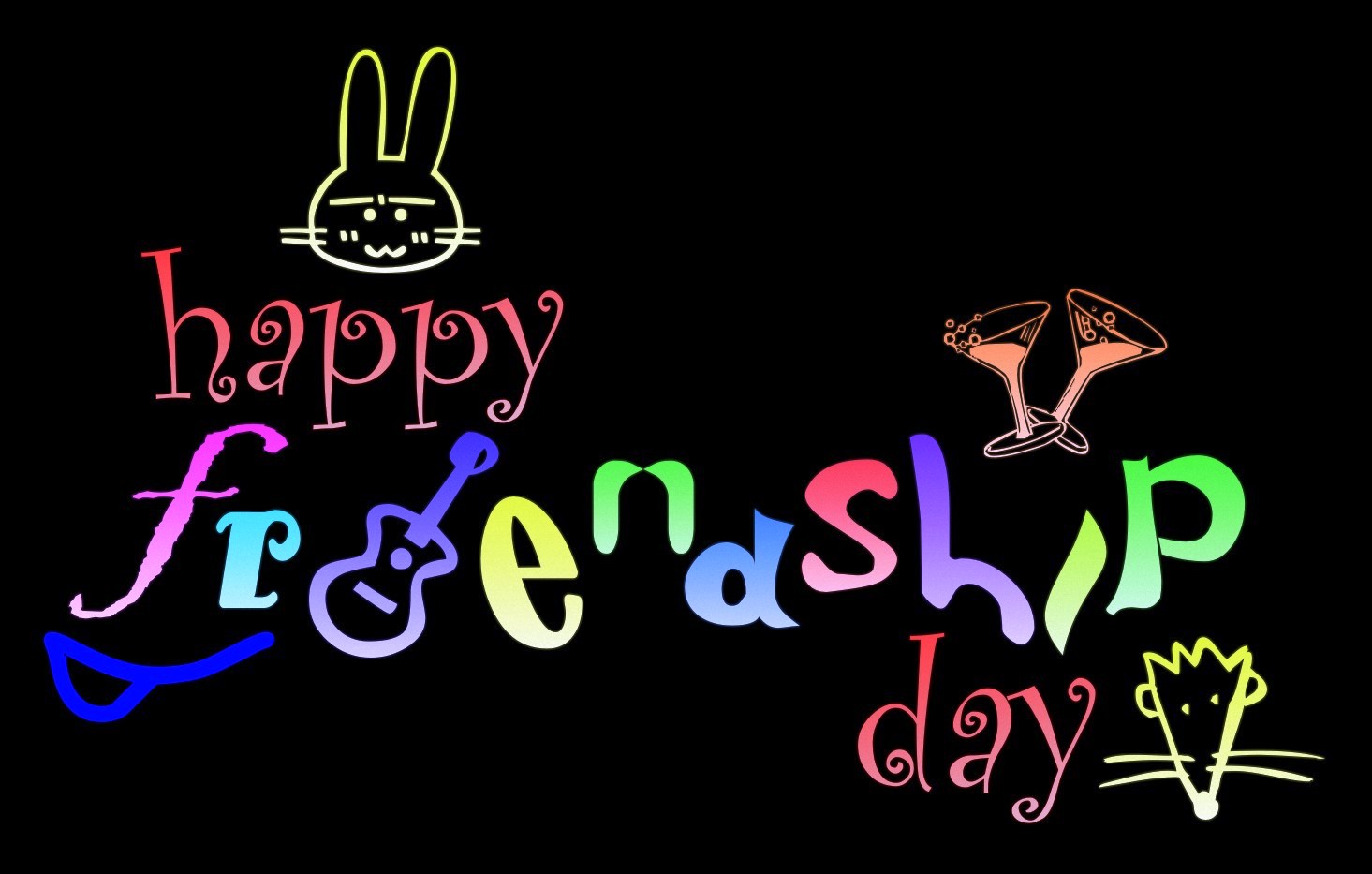Description: A happy freshish day with a rabbit and a cocktail glass on a black background with a happy freshish day message.