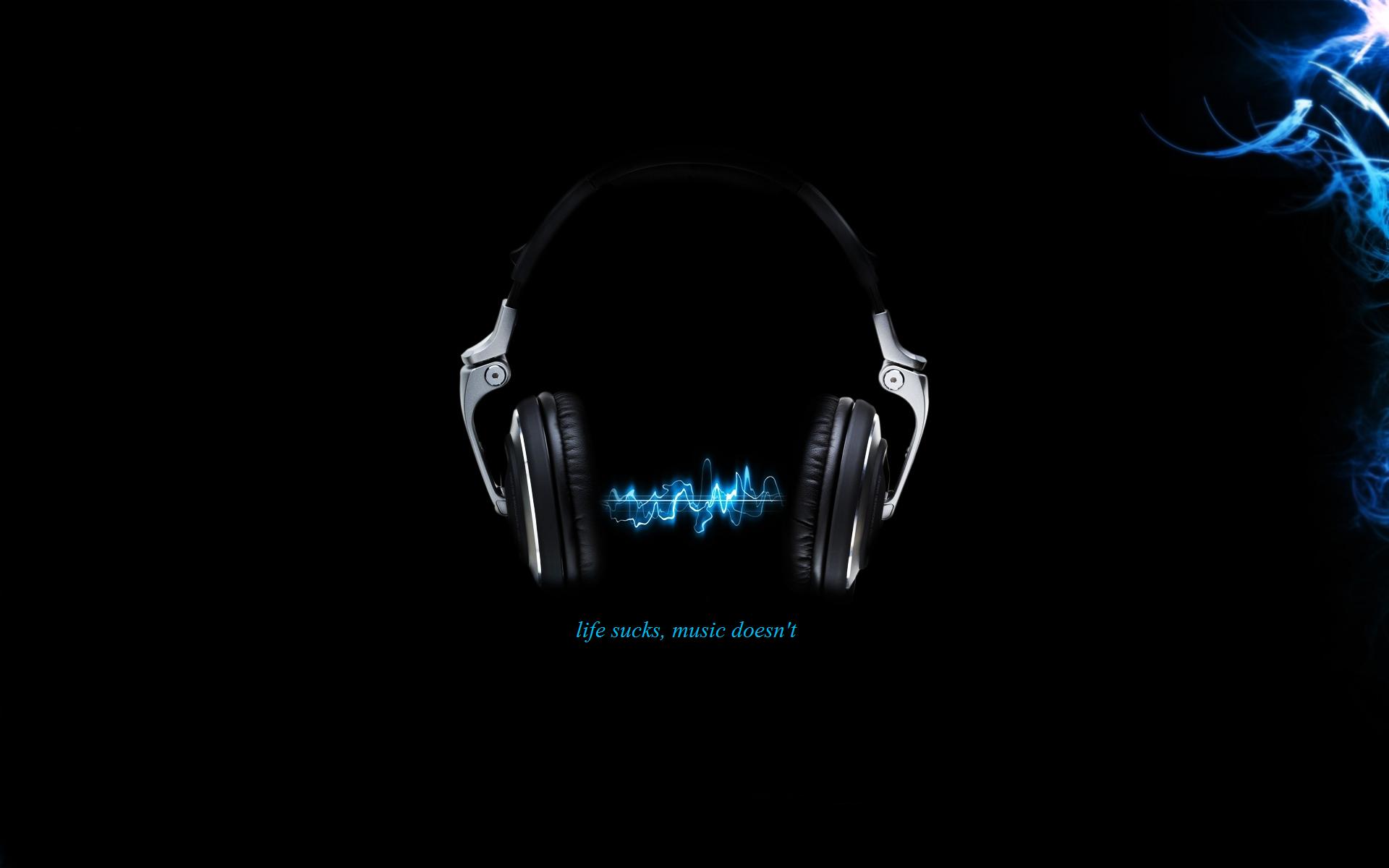 Description: A pair of headphones with a blue light behind them on a black background with a blue and white pattern.