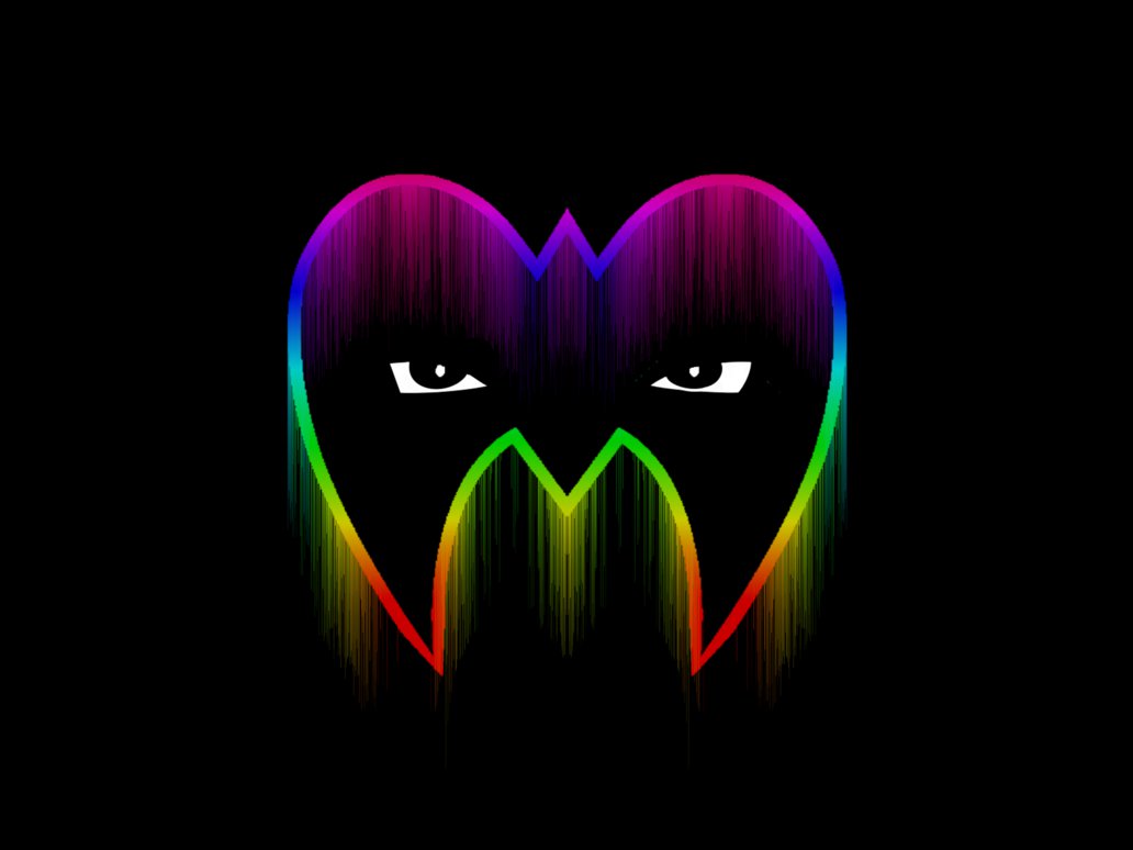 Description: A heart with a face made of lines and eyes on a black background with a black background and a red.