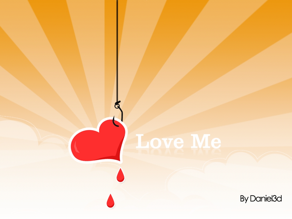 Description: A heart hanging from a hook with the word love me written on it and a drop of blood coming out of it.