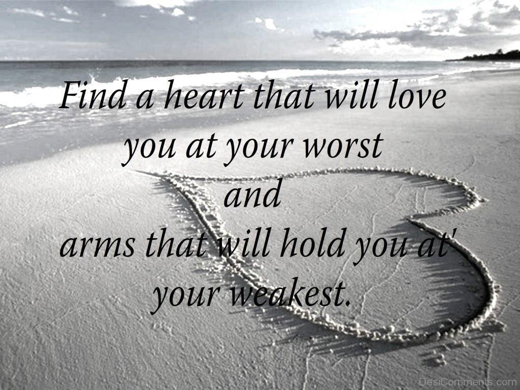 Description: A heart drawn in the sand on a beach with a quote from a man on it that reads.