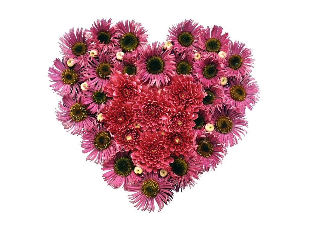 Description: A heart shaped arrangement of flowers on a white background with a white background behind it and a white background behind it.