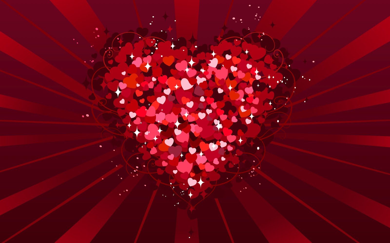 Description: A heart shaped object with many hearts on it's sides and a red background with a burst of light.