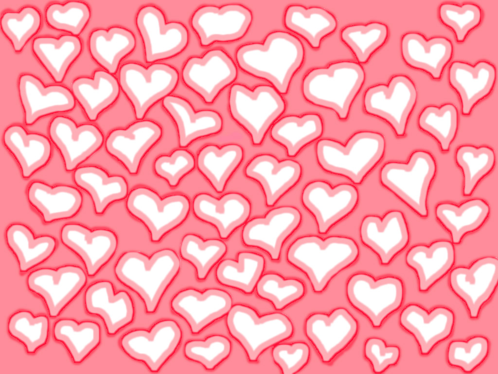 Description: A large group of hearts on a pink background with a white outline of hearts in the center of the image.